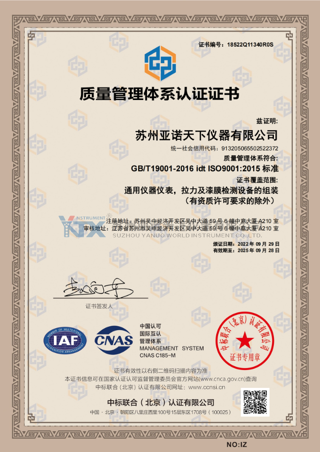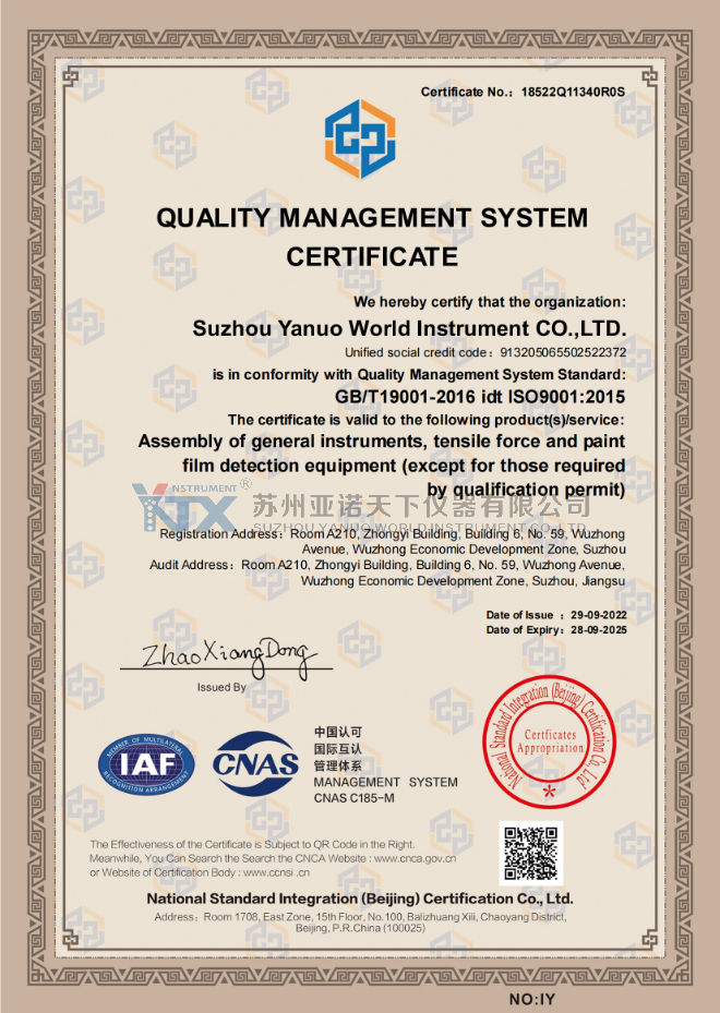 蘇州亞諾天下儀器有限公司是一家專(zhuān)業(yè)研究、開(kāi)發(fā)、設(shè)計(jì)、制造、銷(xiāo)售各類(lèi)精密品管檢測(cè)儀器的高科技企業(yè)。公司開(kāi)發(fā)出適合鞋業(yè)、電子業(yè)、皮革業(yè)、五金電鍍業(yè)、包裝紙業(yè)、電線電纜業(yè)、自行車(chē)業(yè)、金屬塑料業(yè)、紡織等行業(yè)的品管檢測(cè)儀器。產(chǎn)品符合ASTM、JIS、GB、DIN、CNS、ANSI、IEC、VDE等多國(guó)標(biāo)準(zhǔn)相對(duì)應(yīng)的技術(shù)參數(shù),在產(chǎn)品性價(jià)比上力爭(zhēng)完美,以達(dá)到適合不同規(guī)模的企業(yè)選用。陸續(xù)在北京、上海、杭州、武漢、東莞、廈門(mén)、莆田等設(shè)立售后服務(wù)處和辦事機(jī)構(gòu),為用戶提供優(yōu)良的產(chǎn)品售后服務(wù),深得客戶信賴(lài)。公司將秉持YANUO WORLD一貫的專(zhuān)業(yè)精神和質(zhì)量,恪守以質(zhì)量為本,以服務(wù)為經(jīng)營(yíng)之理念,一如既往地為新老客戶,提供專(zhuān)業(yè)的品管檢測(cè)設(shè)備。